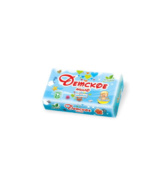 Мыло туалетное твердое “Детское”Аистенок” с молочными протеинами Марка Д. ГОСТ 28546-2002 срок годности 3 года.